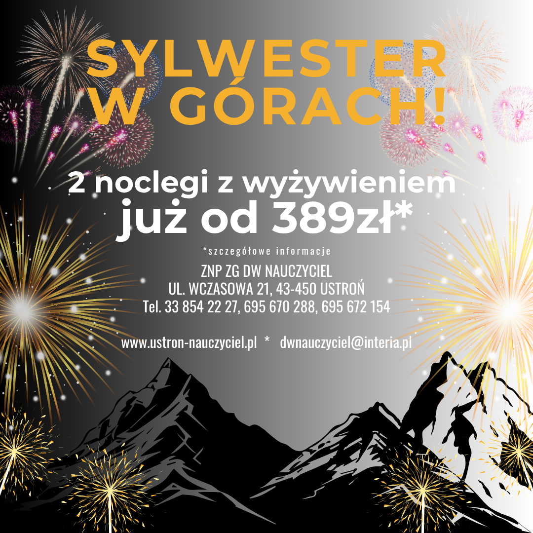 W związku z dużą ilością wolnych pokoi w okresie sylwestrowym i w miesiącu styczniu - w terminie od 1 do 15.01.2026 dodatkowo udzielamy 10 % rabatu od oferty feryjnej przygotowanej dla Pastwa.